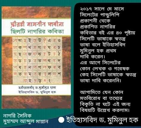 Welcome To Syloti Nagri নাগরি বর্ণে ছিলেটি ভাষা স্বীকৃতি পরিষদ আন্তর্জাতিক নাগরি একাডেমী। Our Gallery See more Our video gallery Our members ইতিহাসবিদ ড.মুমিনুল হক প্রতিষ্ঠাতা ও উপদেষ্টা আলিম উদ্দিন চৌধুরী সভাপতি নইম লস্কর সাধারণ সম্পাদক মোঃ নাসির চৌধুরী তানভীর সহ সাধারণ সম্পাদক